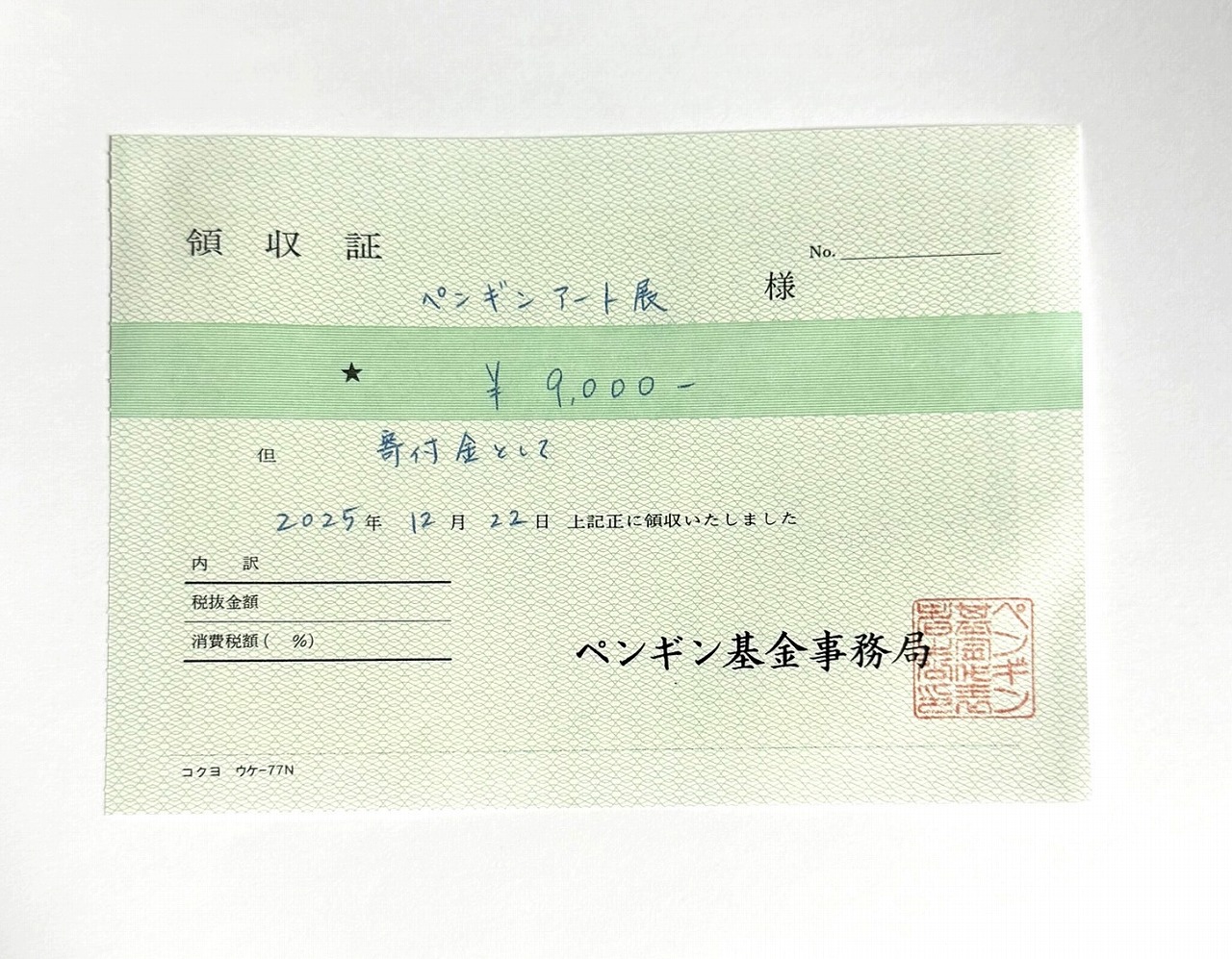 【ご報告】寄付をいたしました その他 2026.02.12 先ほど開催されましたペンギンアート展FINALの懇親会にてオークションが実施されました。 その売上金をペンギン基金様及びペンギン会議様へ寄付をいたしましたことをご報告いたします。 ご協力くださいました皆様に 心より感謝申し上げます。 共有:Tweet